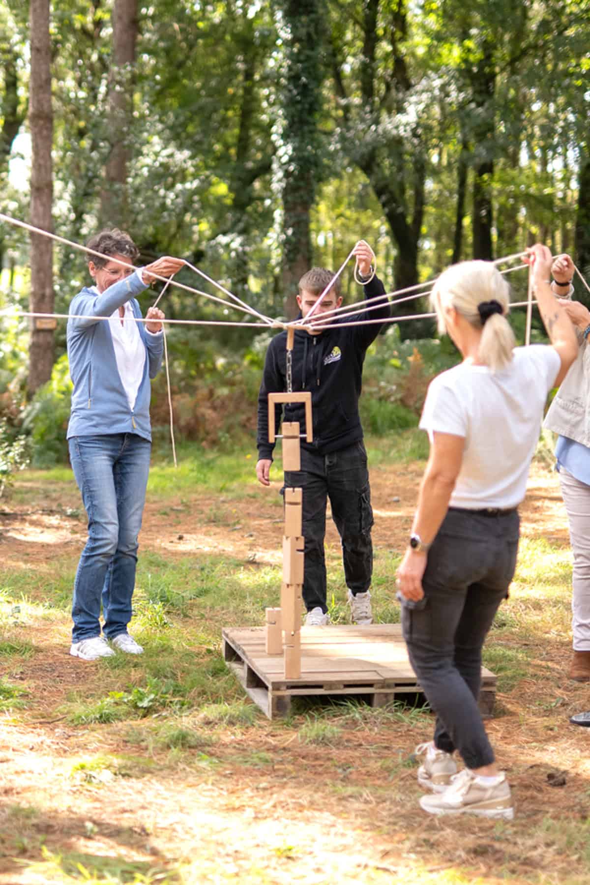 Un enchaînement de mini-défis physiques où les participants évoluent sur des cordes tendues entre différents points d’ancrage. Équilibre, entraide et communication sont les clés pour avancer ensemble et franchir les obstacles. Une activité idéale pour renforcer la confiance et l’agilité collective.